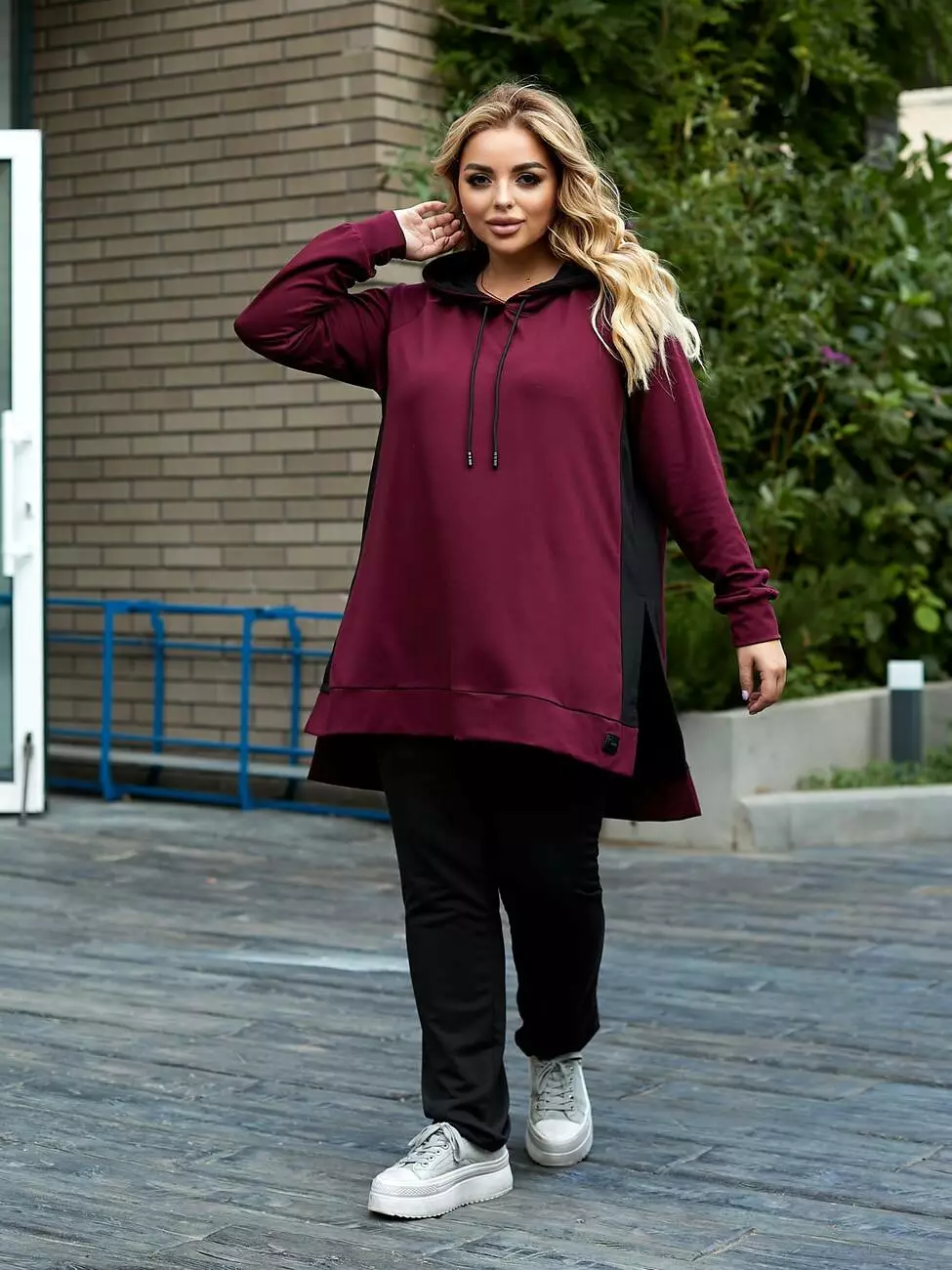 Жіночий прогулянковий, костюм туніка і штани, сірий, вишневий, лазурно-синій, меланж, 48/50, 52/54, 56/58 розміри