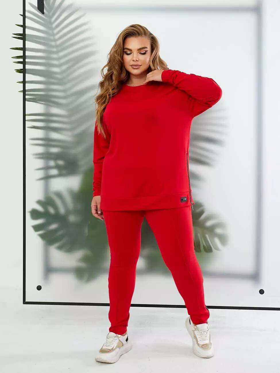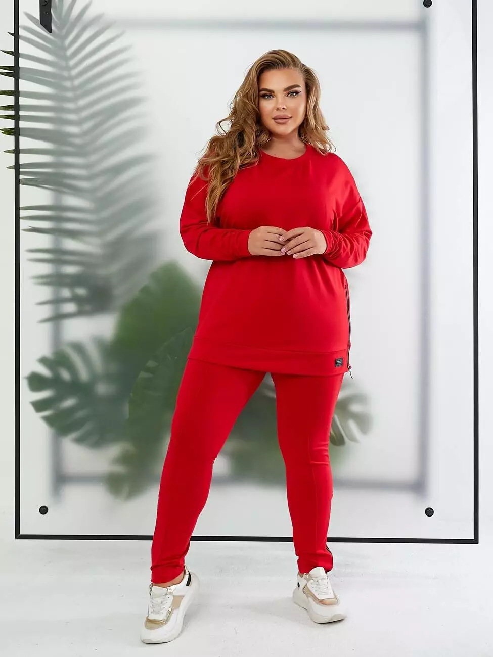 Жіночий спортивний костюм, туніка і штани (лосіни), 48/50, 52/54, 56/58 розміри, червоний, чорний, шоколад