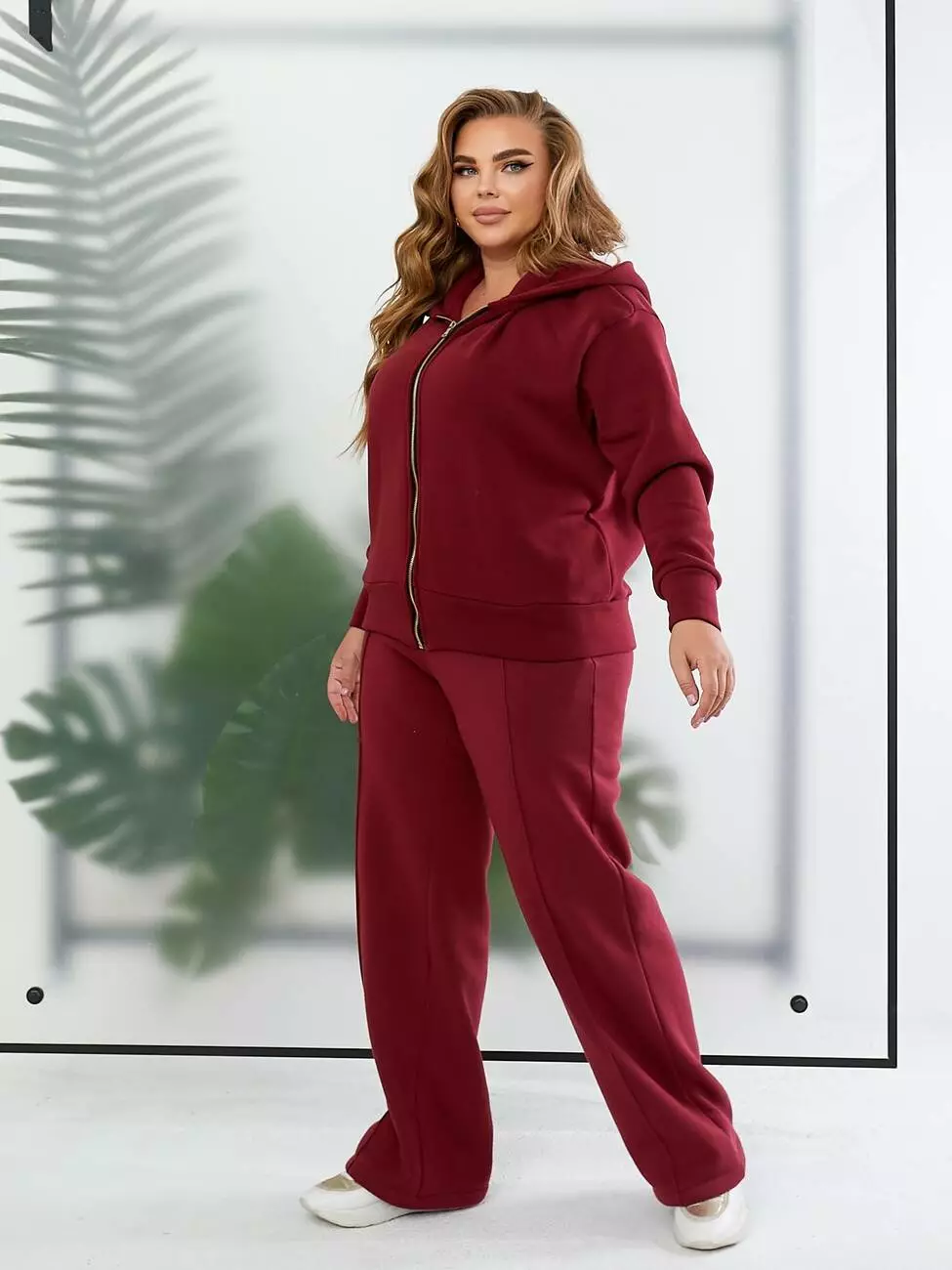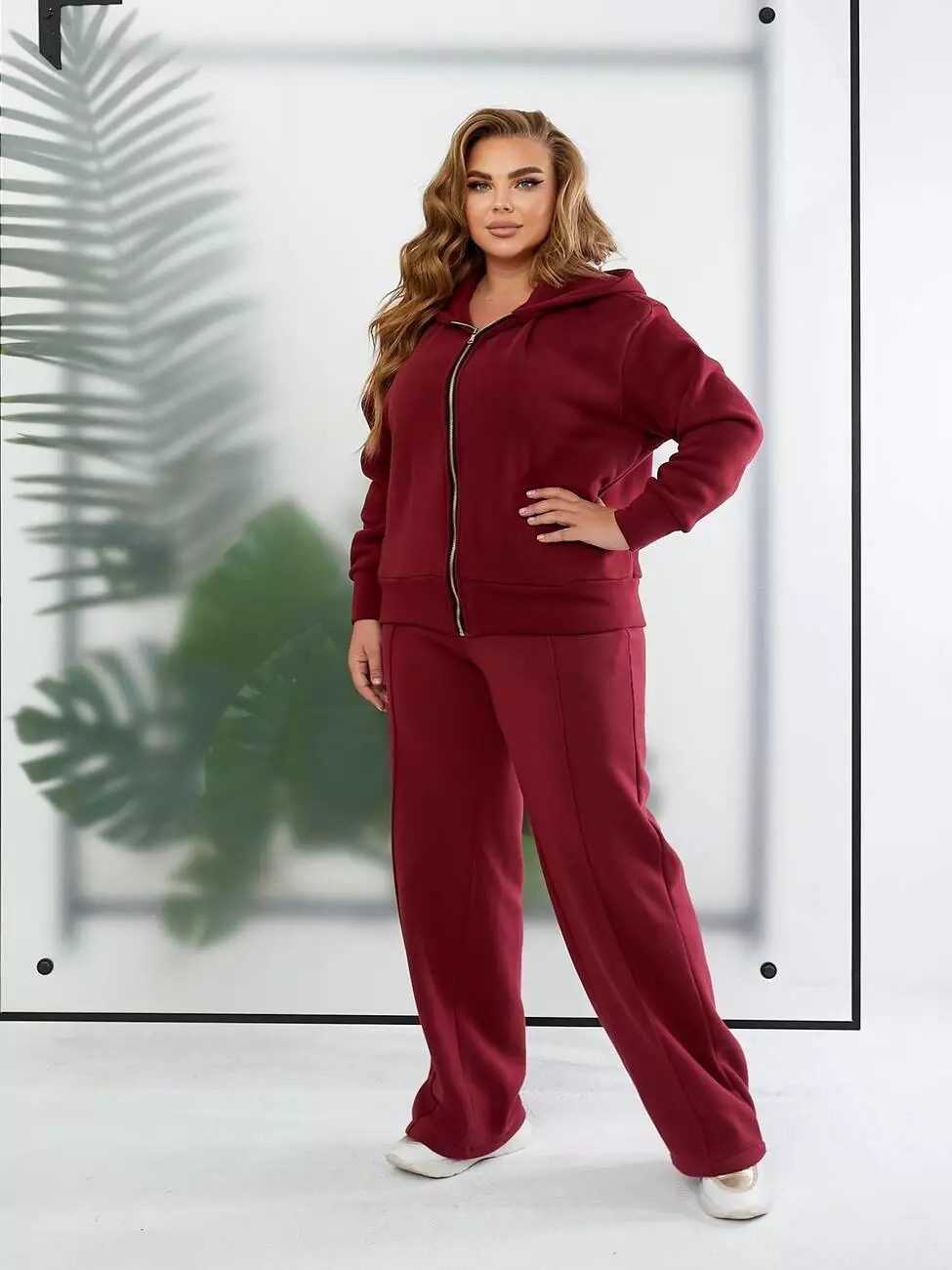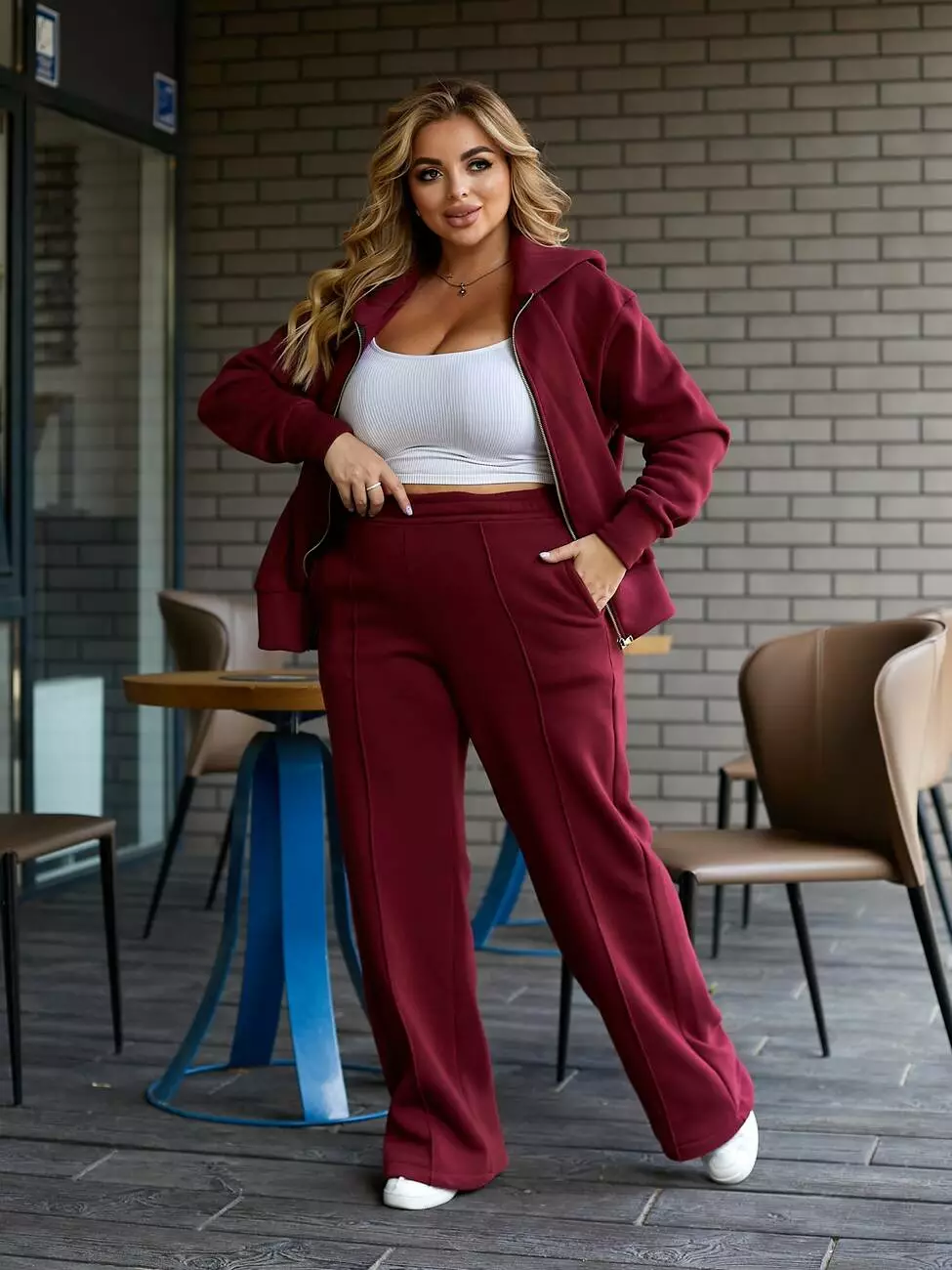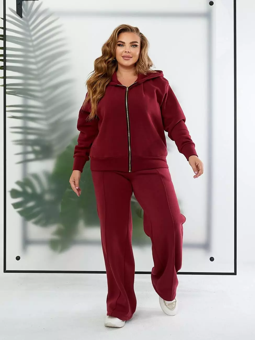 Жіночий прогулянковий костюм, кофта на блискавці і штани кльош, 48/50, 52/54, 56/58 розміри, бордо, чорний, світло-сірий