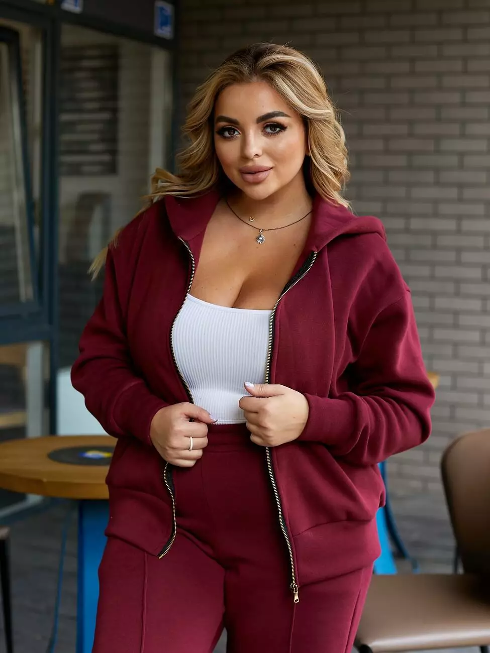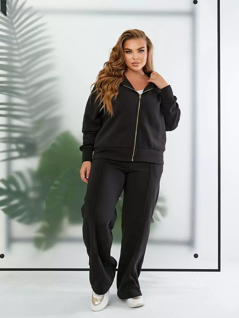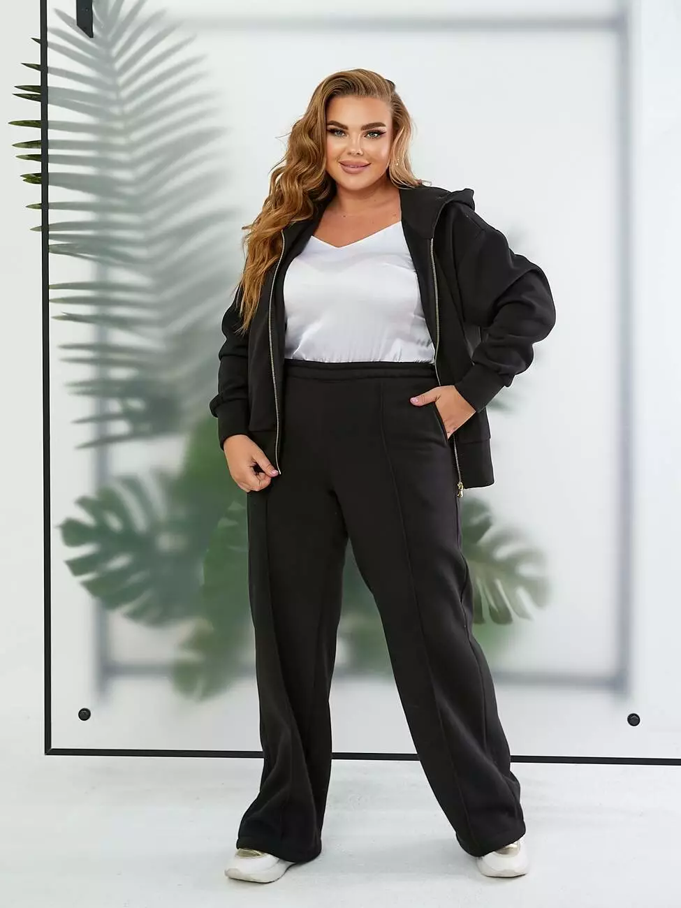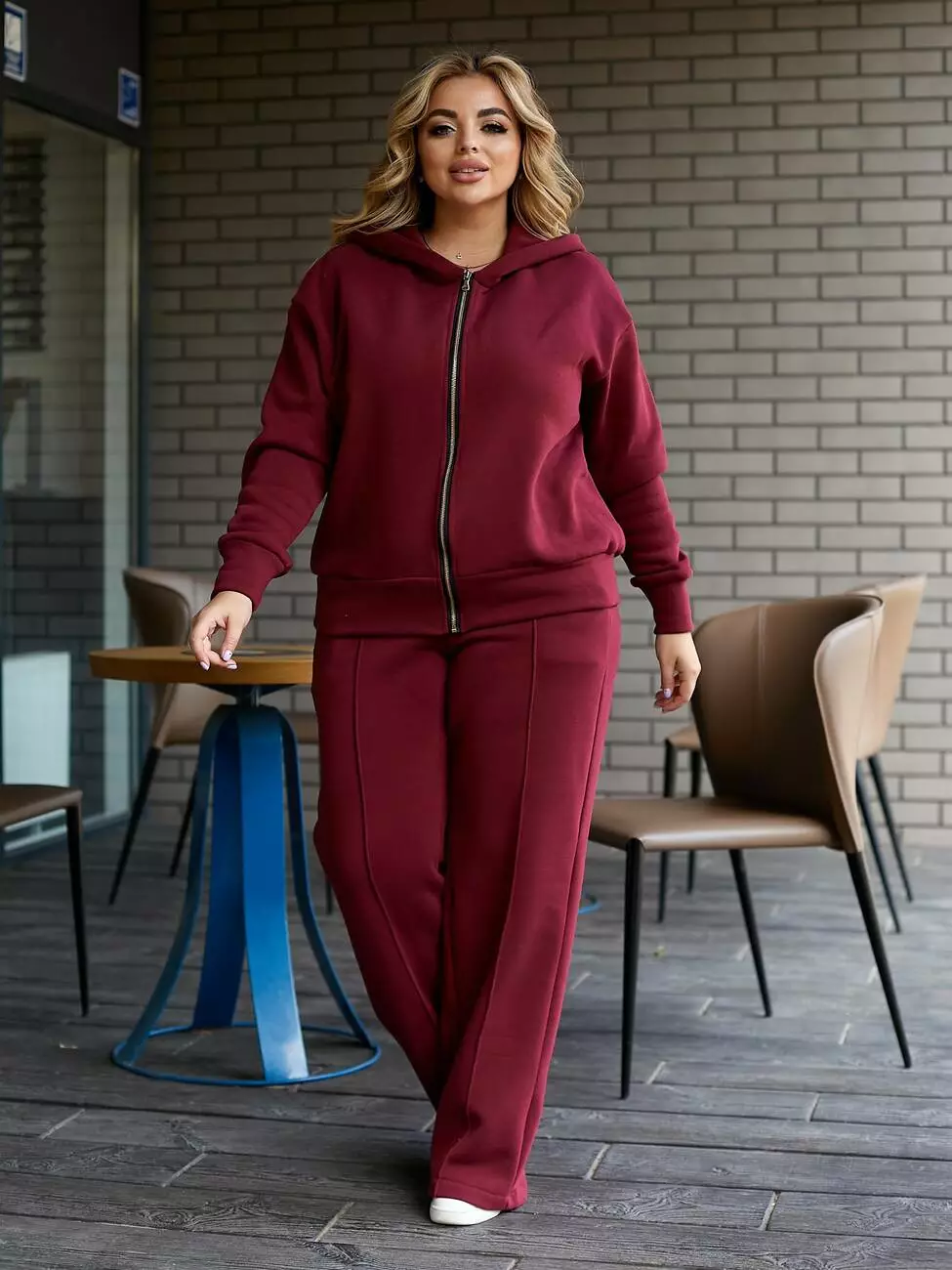 Жіночий прогулянковий костюм, кофта на блискавці і штани кльош, 48/50, 52/54, 56/58 розміри, бордо, чорний, світло-сірий