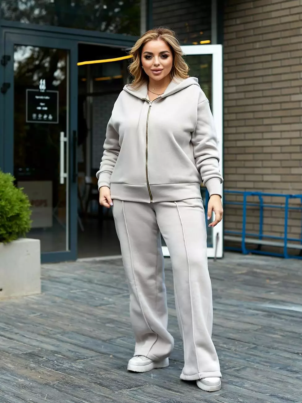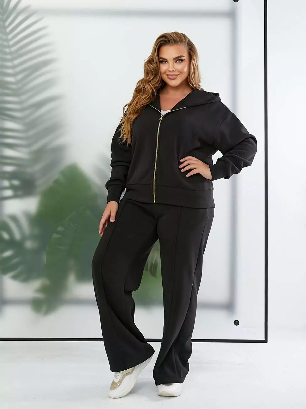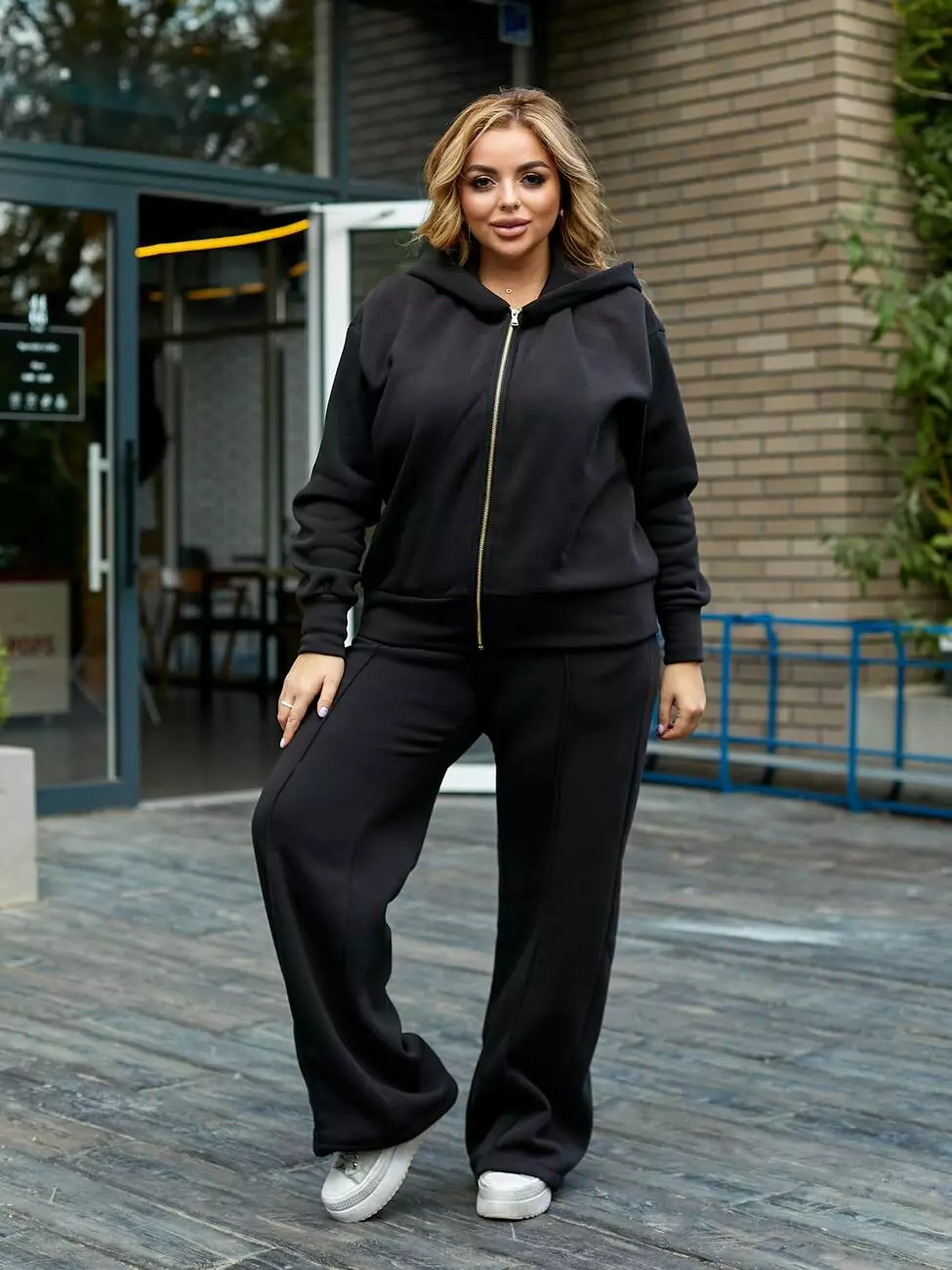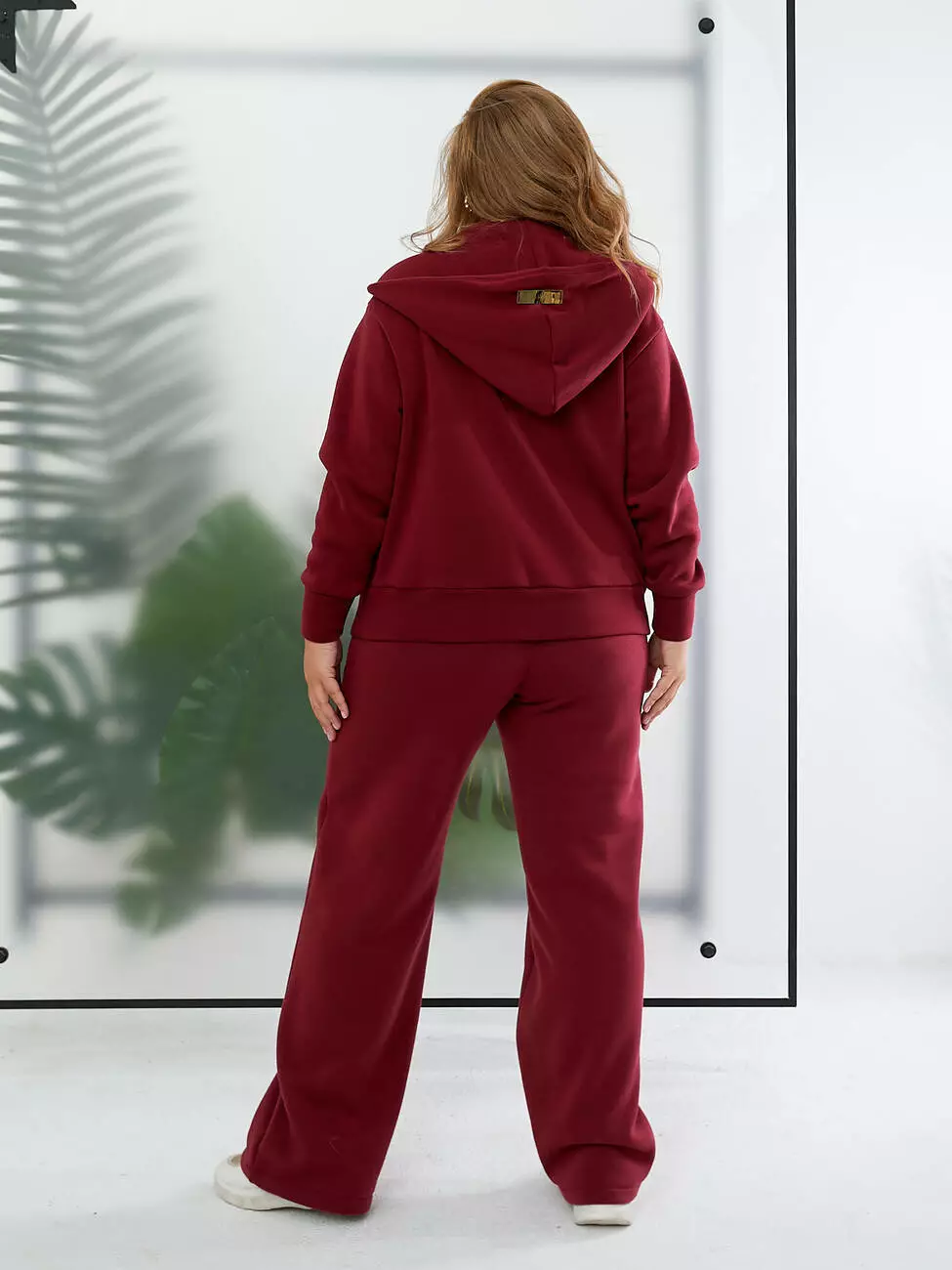 Жіночий прогулянковий костюм, кофта на блискавці і штани кльош, 48/50, 52/54, 56/58 розміри, бордо, чорний, світло-сірий