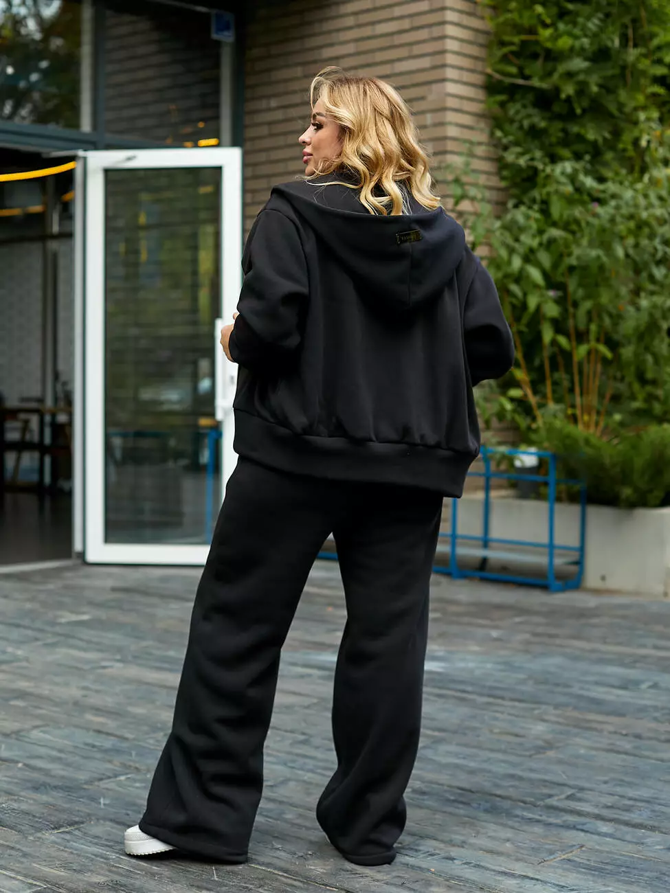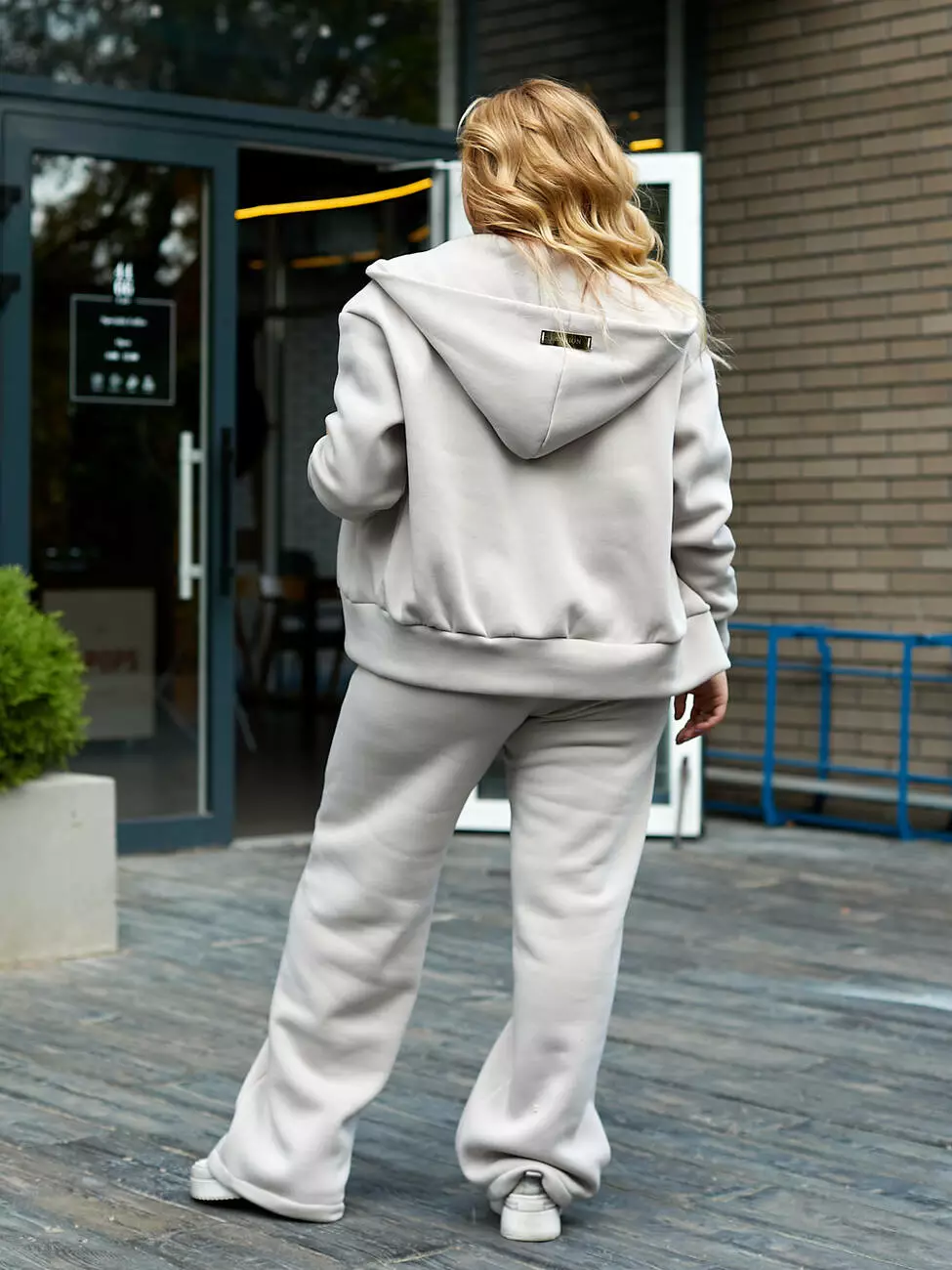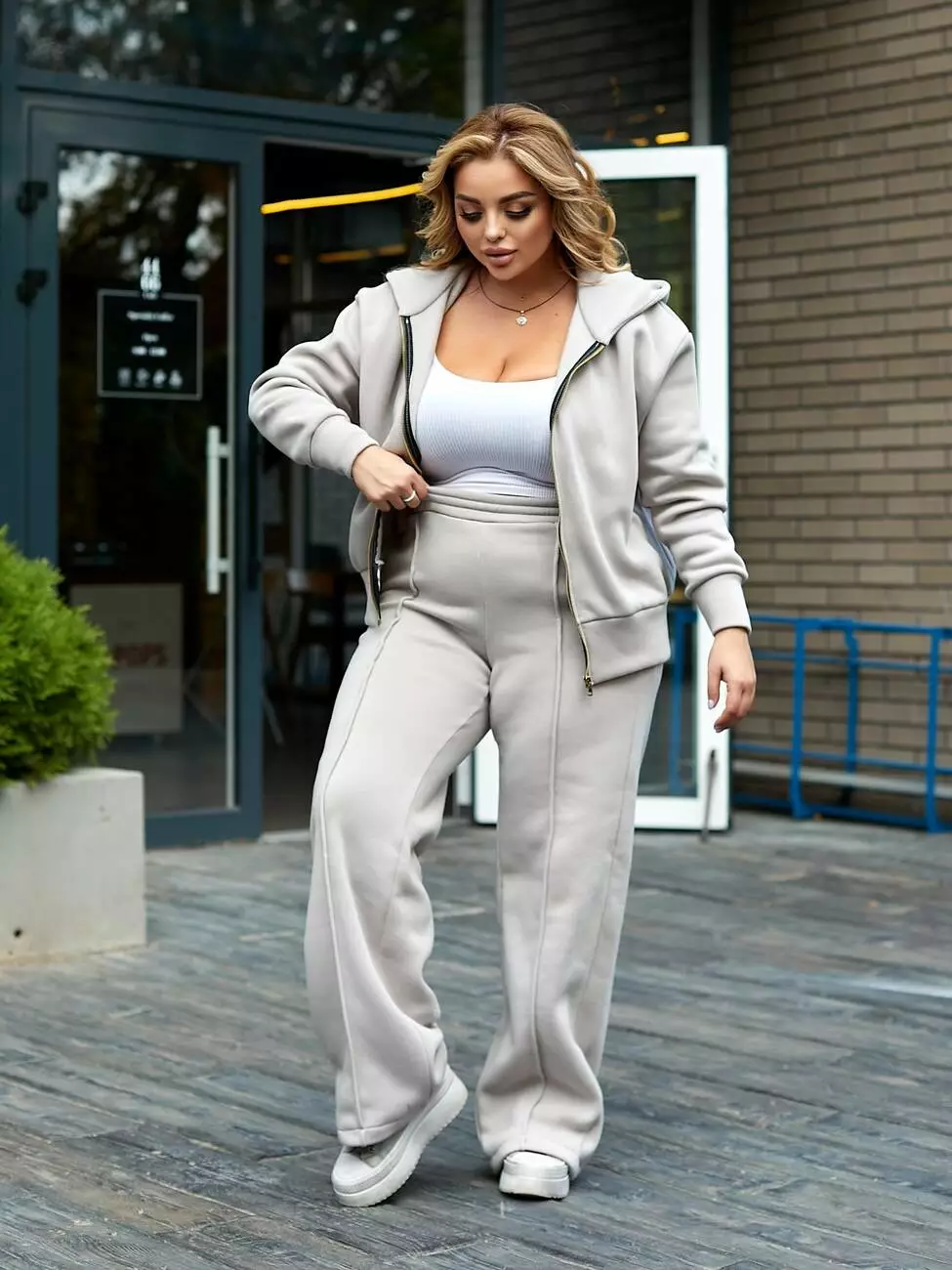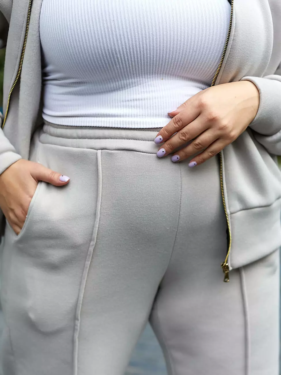 Жіночий прогулянковий костюм, кофта на блискавці і штани кльош, 48/50, 52/54, 56/58 розміри, бордо, чорний, світло-сірий